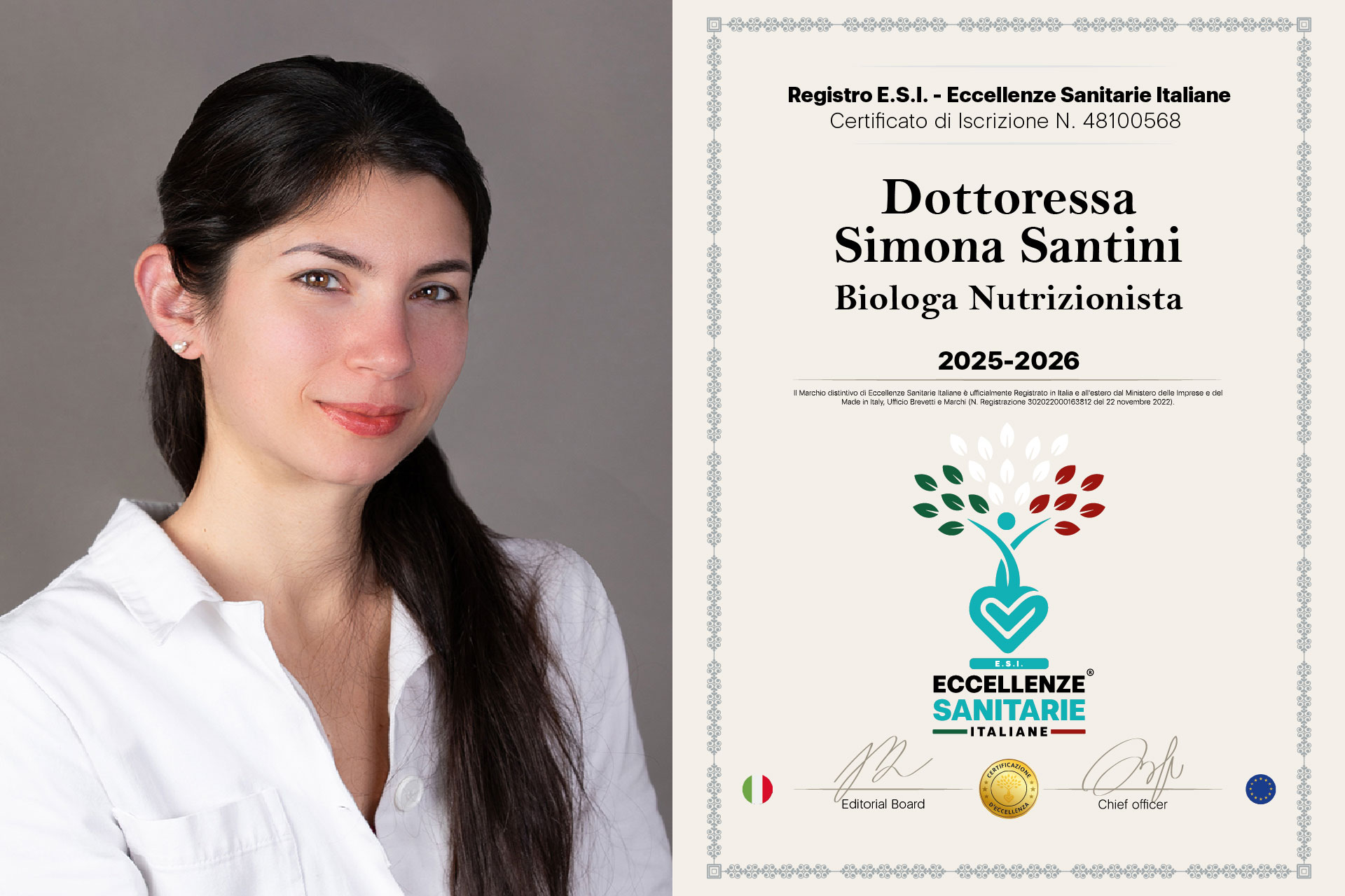 È proprio per questo insieme di qualità che la Dottoressa Simona Santini può essere considerata a pieno titolo una delle professioniste selezionate tra le Eccellenze Sanitarie Italiane: per la solidità del percorso accademico, per l’esperienza scientifica maturata nella ricerca, per la formazione continua, per la capacità di offrire percorsi nutrizionali realmente personalizzati, per l’uso di strumenti avanzati di valutazione, per l’impegno nella divulgazione seria e accessibile, per le pubblicazioni editoriali, per le collaborazioni con testate autorevoli e per il valore umano che emerge nella relazione con i pazienti. In lei convivono competenza, aggiornamento, credibilità e attenzione concreta al benessere delle persone: caratteristiche che definiscono, in modo autentico, un’eccellenza sanitaria.
